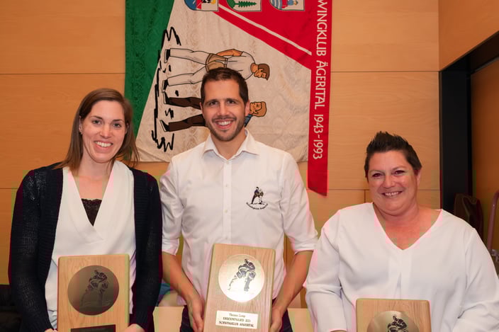 Finanziell konnte Martina Rastberger einen hohen fünfstelligen Gewinn vermelden, dies dank der Auflösung des Trägervereins vom ESAF 2019 und der Auszahlung der vielen Helferstunden vom Innerschweizer Schwingfest im Menzingen 2024. Bei den Wahlen mussten für drei Vorstandsmitglieder eine Nachfolge gewählt werden. Martina Rastberger trat nach neun Jahren vom Amt des Kassiers zurück. Ihr Nachfolger wird Christian Volken. Auch das Sekretariat, zehn Jahre lang von Irene Iten geführt, wird mit Jenny Germann neu besetzt und Dani Meier übernimmt das Amt des Technischen Leiters nach sechs Jahren von Thomas Zemp. Die drei neuen und alle anderen Vorstandsmitglieder wurden einstimmig (wieder)gewählt. Bei den Ehrungen wurden die drei abtretenden Vorstandsmitglieder zu Ehrenmitgliedern ernannt. Martina, Irene und Thomas waren nicht nur im Vorstand tätig, sondern auch als tatkräftige Helfer und in diversen Organisationskomitees.